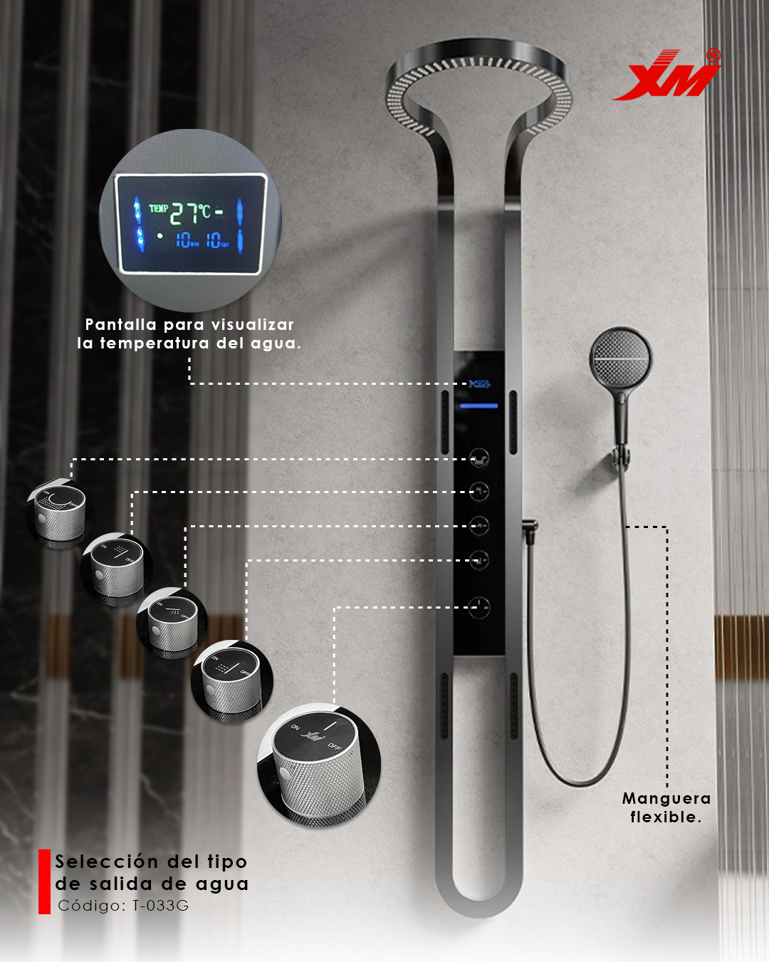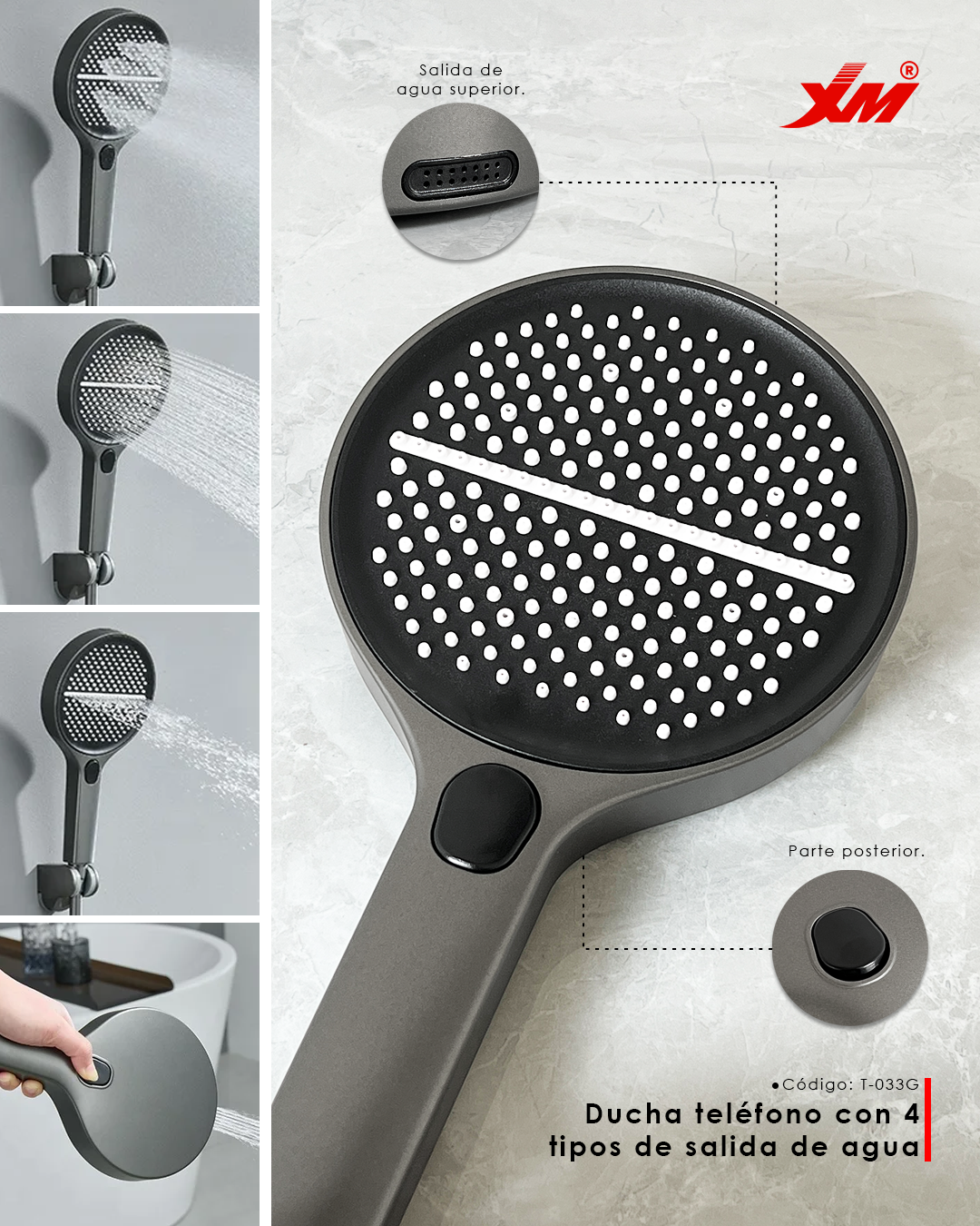 La Ducha - T-033G ha sido diseñada pensando en tu comodidad y en la estética de tu baño. Su forma y acabados contemporáneos se integran perfectamente en cualquier estilo, desde el minimalista hasta el más clásico, elevando instantáneamente la apariencia de tu espacio personal. Cada detalle, desde el agarre hasta el cabezal, refleja un compromiso con la calidad y el buen gusto.