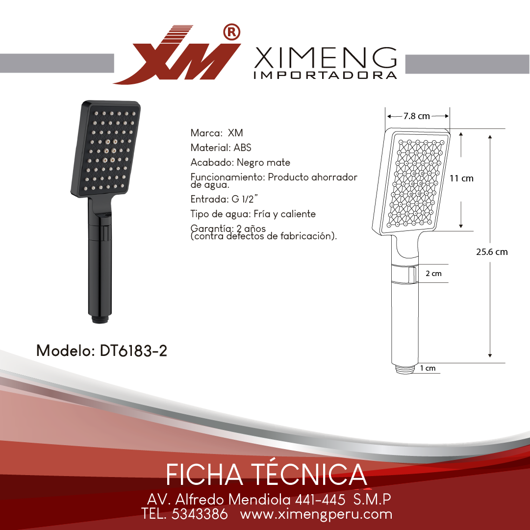 Fabricada con materiales premium como latón cromado y acero inoxidable, esta ducha teléfono está construida para durar. En malvinas.pe nos aseguramos de que cada producto, como la DT6183-2, cumpla con los más altos estándares, ofreciéndote una garantía que respalda nuestra confianza en su calidad y durabilidad.