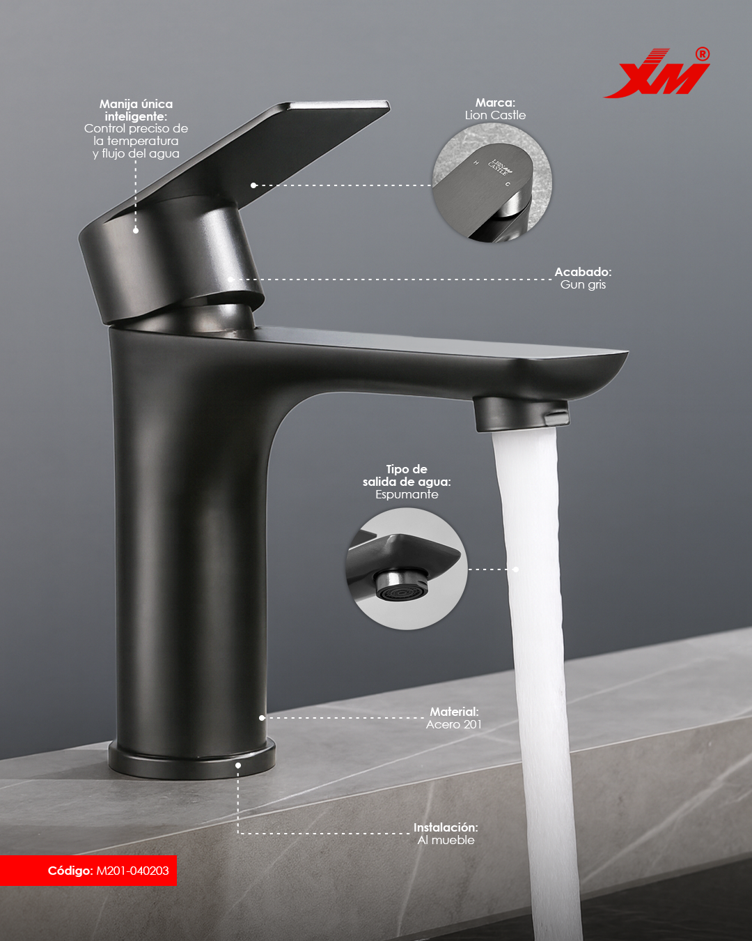 Además de su belleza y durabilidad, la Mezcladora M201-040203 está concebida para ser amigable con el medio ambiente y tu bolsillo. Su diseño incorpora un sistema de aireación que mezcla el agua con aire, reduciendo el consumo sin sacrificar la sensación de un caudal abundante, lo que se traduce en un ahorro significativo en tu factura de agua.