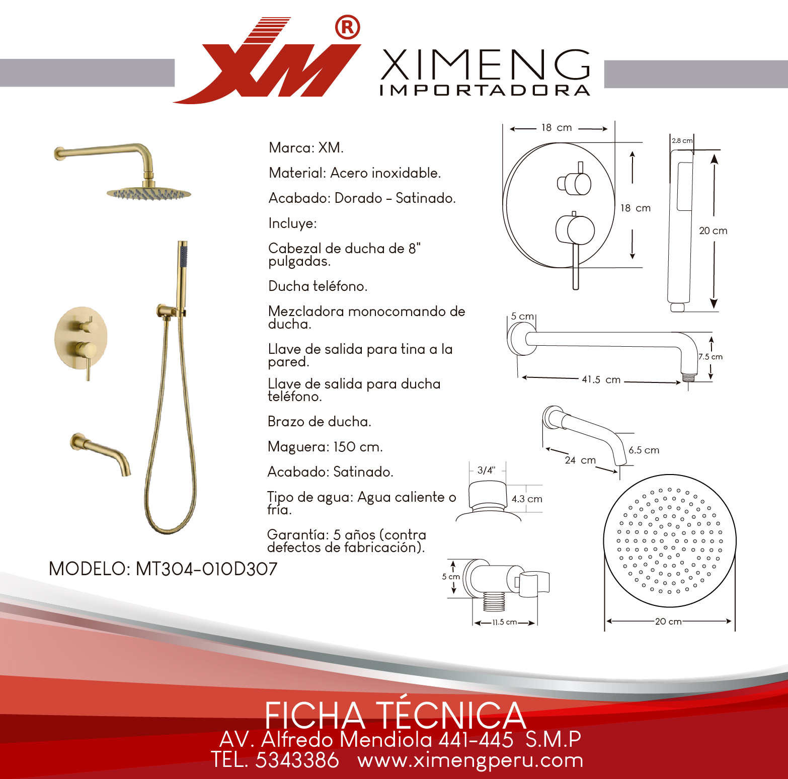 Ya sea que estés renovando tu baño actual o construyendo uno nuevo desde cero, la Mezcladora para Ducha MT304-010D307 es la elección ideal. Su diseño versátil se adapta a una amplia gama de estilos de baño, desde los más minimalistas hasta los más clásicos, convirtiéndose en una inversión que agrega valor y estilo a tu hogar.