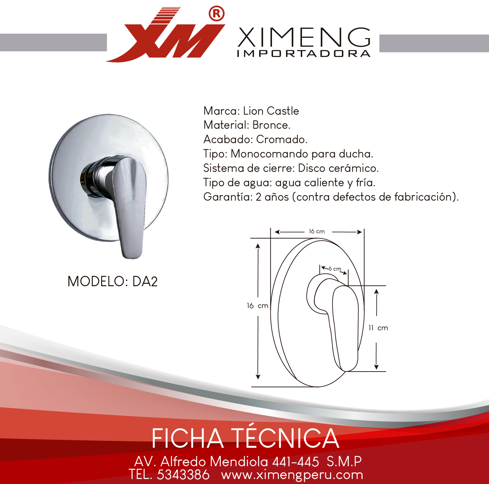 Diseñado para adaptarse a la mayoría de sistemas de plomería standard, el Monocomando de Ducha - DA2 es la opción perfecta tanto para remodelaciones como para nuevas construcciones. Su instalación es rápida y no requerirá de trabajos adicionales complejos.