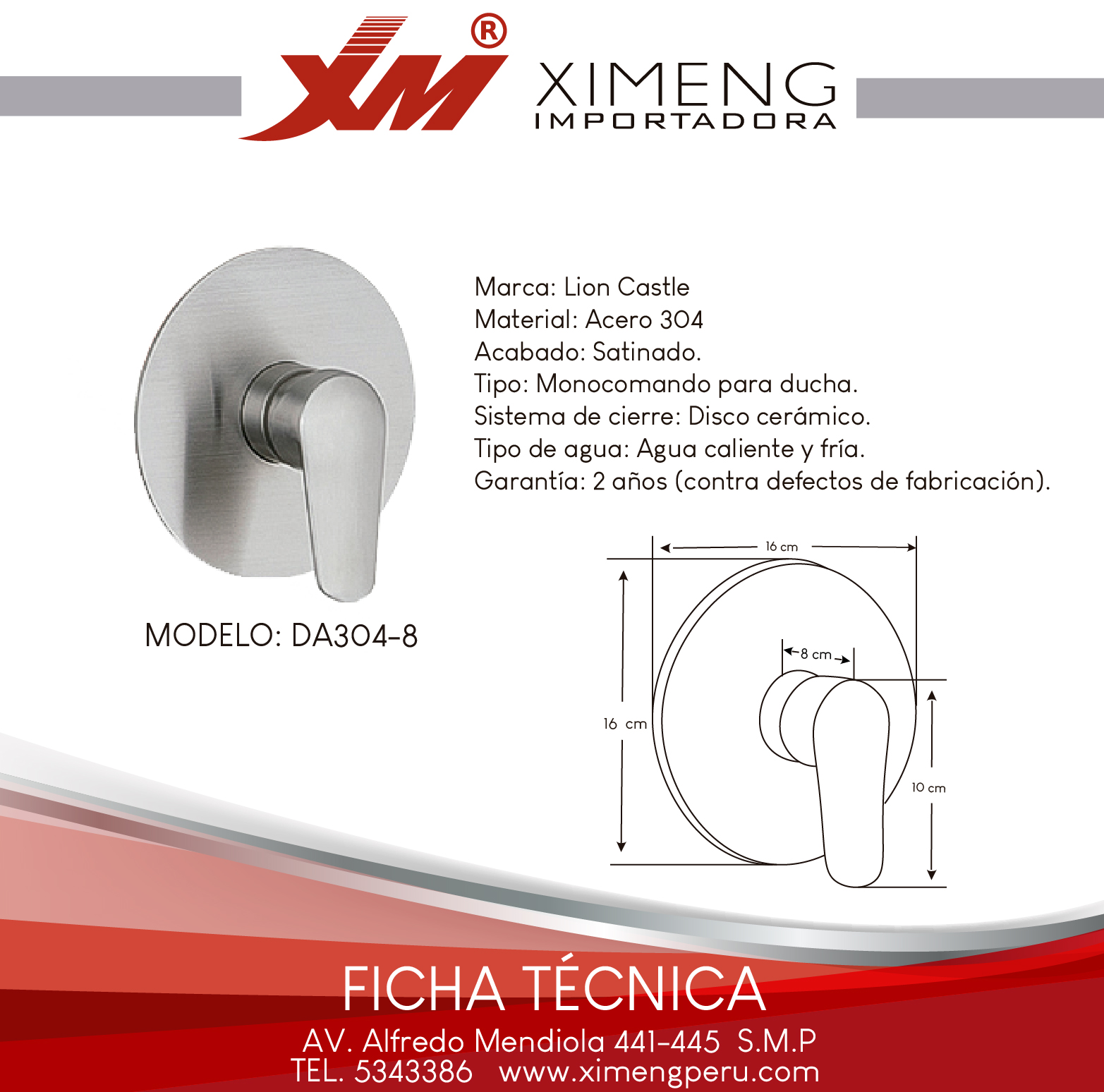 No esperes más para dar el paso definitivo hacia la excelencia en tu baño. El control, la elegancia y la calidad que necesitas están a un clic de distancia. Adquiere tu Monocomando de Ducha - DA304-8 hoy mismo en nuestra tienda online y descubre por qué en Malvinas somos sinónimo de confianza. ¡Visita malvinas.pe y haz de tu baño tu espacio favorito!