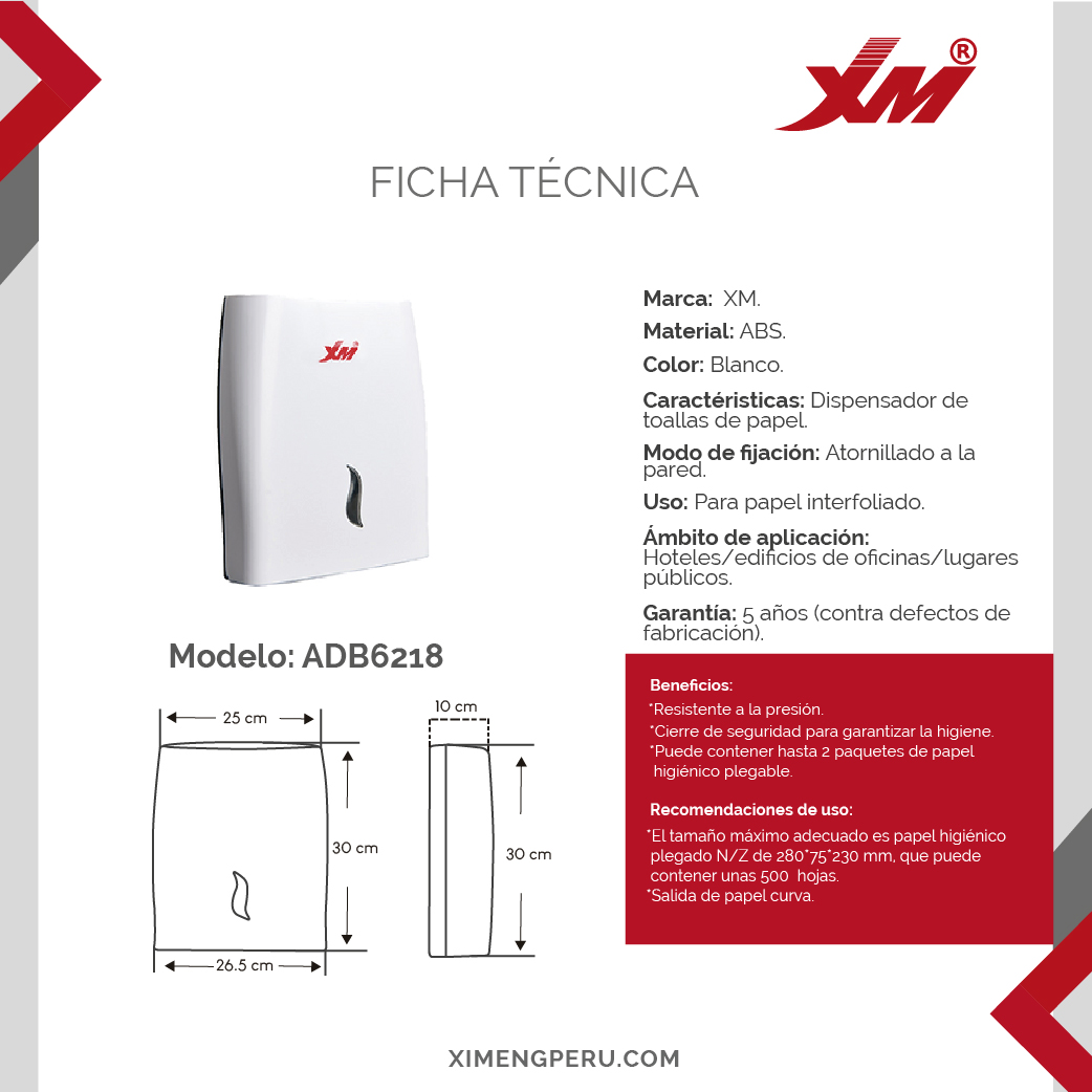 Invertir en el Dispensador de Papel ADB6218 es invertir en limpieza, orden y eficiencia. Es un producto que responde a las necesidades modernas, ofreciendo fiabilidad y un estilo que perdura. No conformes con menos cuando puedes tener lo mejor.