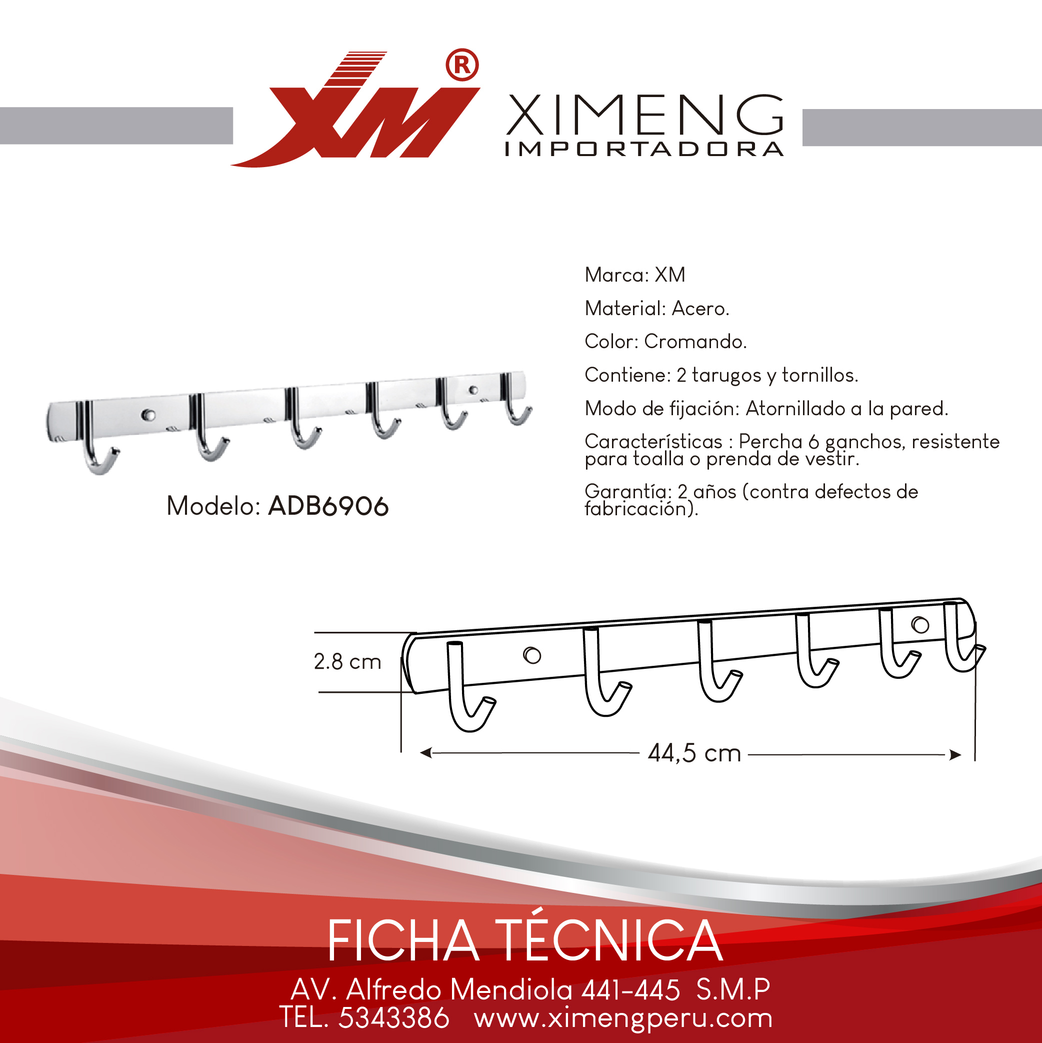 Uno de los mayores beneficios del Perchero ADB6906 es su facilidad de instalación. Está listo para montar en la pared de forma rápida y segura, sin necesidad de complicadas herramientas o procedimientos. Su construcción robusta, con acabados resistentes a la corrosión y al desgaste, garantiza que tu inversión perdurará en el tiempo. En malvinas.pe nos preocupamos por ofrecerte productos que cumplan con los más altos estándares de calidad.