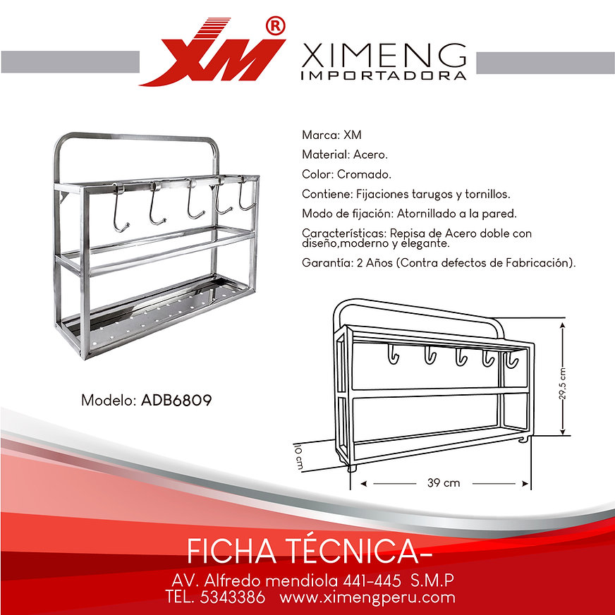 No necesitas ser un experto en bricolaje para instalar tu nueva repisa. Con una guía de instalación clara y todos los soportes necesarios incluidos, podrás montarla en cuestión de minutos. En malvinas.pe nos comprometemos con la satisfacción del cliente, por lo que cada producto, incluyendo la repisa ADB6809, pasa por rigurosos controles de calidad para garantizar una larga vida útil y un rendimiento óptimo.