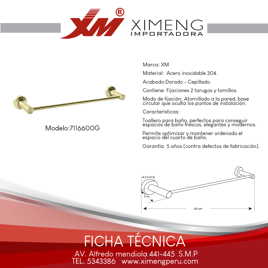 ¿Estás buscando el toallero perfecto que combine durabilidad, diseño y funcionalidad para tu baño? En malvinas.pe, presentamos el modelo Toallero - 7116600G, una pieza esencial diseñada para transformar por completo tu espacio. No te conformes con soluciones temporales; opta por la excelencia y dale a tus toallas el lugar que se merecen con un accesorio que marcará la diferencia en tu rutina diaria. Descubre por qué este toallero es la inversión inteligente que tu hogar necesita.