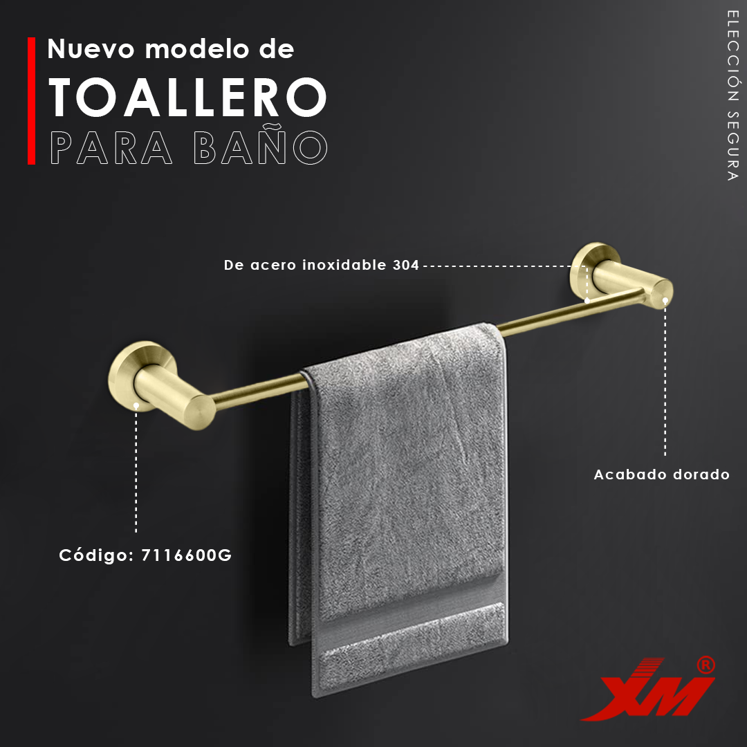 El Toallero - 7116600G está fabricado con materiales de primera calidad, pensados para resistir la humedad constante del baño y el uso frecuente. Su estructura sólida garantiza que permanezca firme y estable, soportando el peso de varias toallas gruesas sin doblarse o ceder. Es la garantía de un producto que perdurará en el tiempo, manteniendo su funcionalidad y apariencia como el primer día.