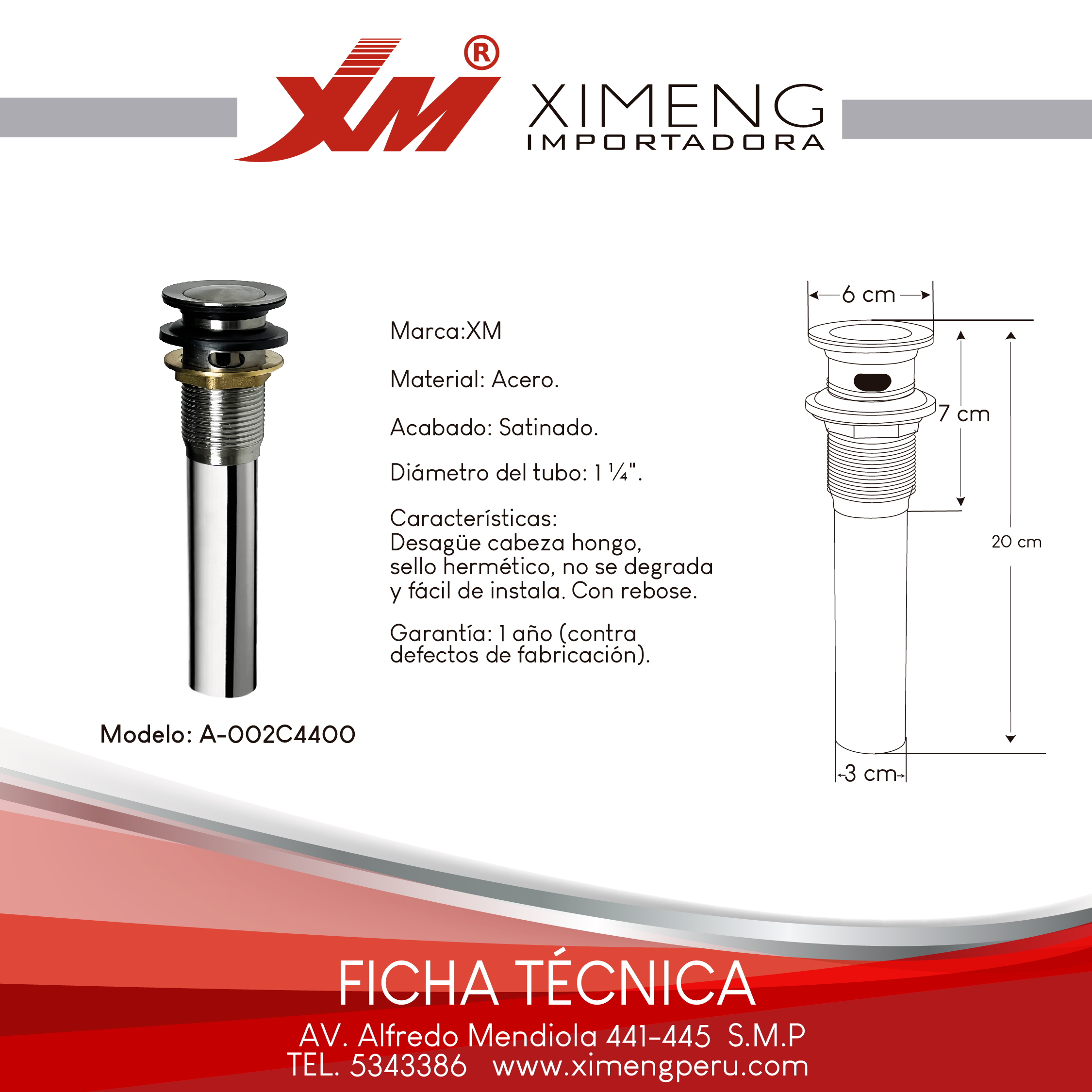 En Malvinas.pe, cada Desagüe 002C4400 que vendemos cumple con los más altos estándares de control de calidad. Confía en una tienda que se preocupa por la satisfacción total del cliente y que selecciona solo los mejores productos para tu hogar o negocio.