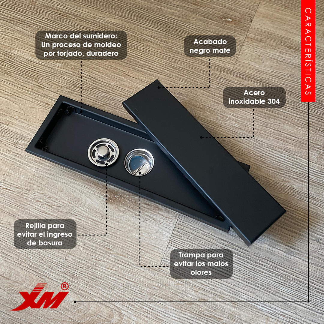 La calidad del acero inoxidable 304 es evidente. Su trampa interna es muy eficaz, eliminando por completo los malos olores e insectos. La instalación fue sencilla y su acabado negro mate queda perfecto. Un producto muy resistente y funcional, tal como se describe.