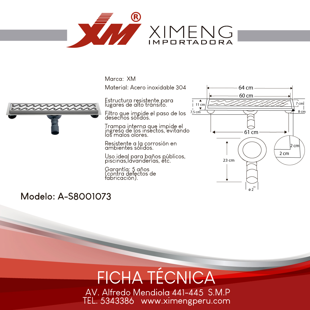 Este modelo específico está diseñado para soportar cargas pesadas y condiciones ambientales adversas. Su robusta construcción asegura que no se agriete o deforme con el tiempo, proporcionando una solución de drenaje confiable para años venideros. Al elegir el A-S8001073, estás invirtiendo en la prevención de inundaciones y en la protección de la infraestructura de tu propiedad.