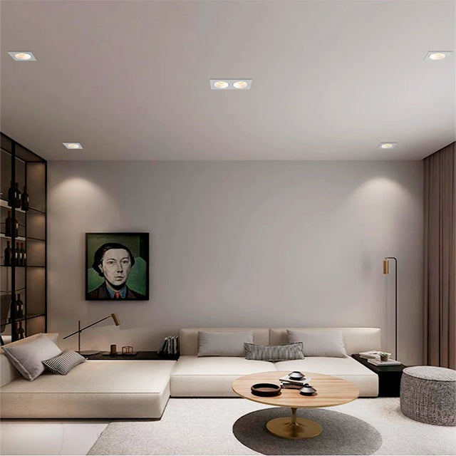 USOS Y APLICACIONES DEL SPOT EMPOTRABLE CARDANE CARDÁNICA ORIENTABLE RECTANGULAR PARA 02 DICROICOS LED COLOR BLANCO