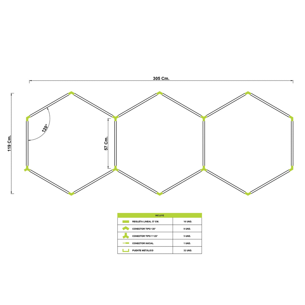 - Modelo: Kit 03 Hexagonales Luz Blanca