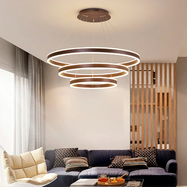 ¡Lleva la elegancia y versatilidad a tu hogar con nuestra Lámpara Colgante Francia Coffee LED con control remoto LED! Ilumina tu sala y comedor con sus 3 aros personalizables para crear el ambiente perfecto. Además, ¡controla su brillo y temperatura de color desde la comodidad de tu sofá! ¡Aprovecha ahora!