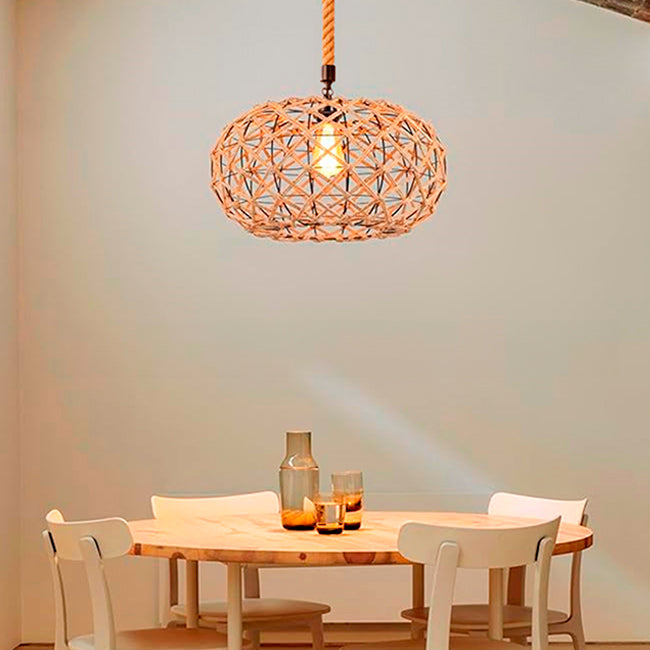 Para los amantes de lo eternamente natural, nuestra hermosa Lámpara Colgante contiene una fina hebra de cabuya natural, que permite una percepción de luz agradable, homogénea y uniforme para el ambiente.