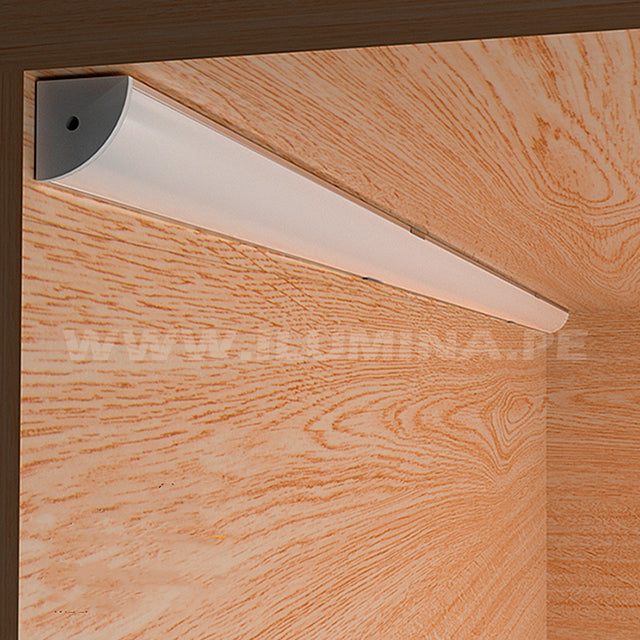 Nuestro perfil empotrable está compuesto por una base en 100% aluminio aligerado y una pantalla de policarbonato flexible.