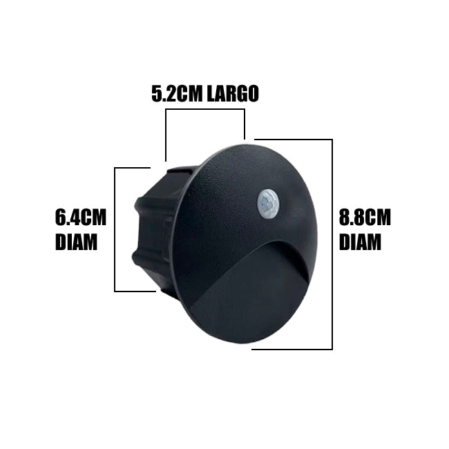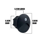 SPOT LUZ GUÍA DE PASO RAQUEL LED ASIMÉTRICO 3W CIRCULAR NEGRO CON SENSOR DE MOVIMIENTO LUZ CÁLIDA
