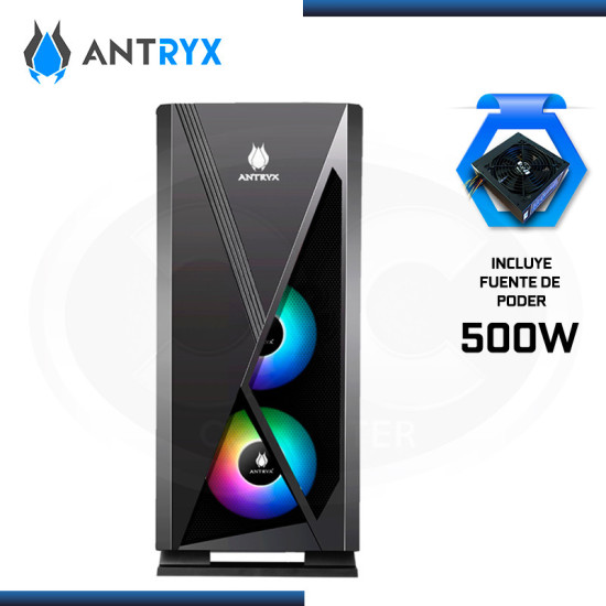 CASE ANTRYX EXTREME NEO II VIDRIO TEMPLADO + FAN ARGB x 2 CON FUENTE 500W USB 3.0/USB 2.0 (PN:AC-XN02KR1-500CP)