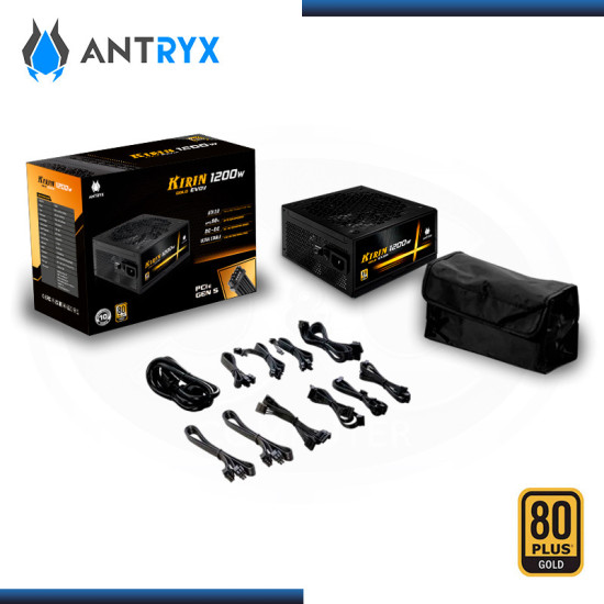 FUENTE ANTRYX KIRIN GOLD EVO II BLACK 1200W 80 PLUS GOLD MODULAR PCI 5.(PN:CSZ1200V5-C) - La Fuente de Poder Definitiva para tu PC de Alto Rendimiento