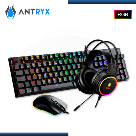 KIT ANTRYX GC3100 X3 BLACK RGB TECLADO SWITCH BLUE + AUDIFONO + MOUSE (PN:AGC-3100X3KBL-SP) - Domina el Juego con el Combo Gamer Definitivo